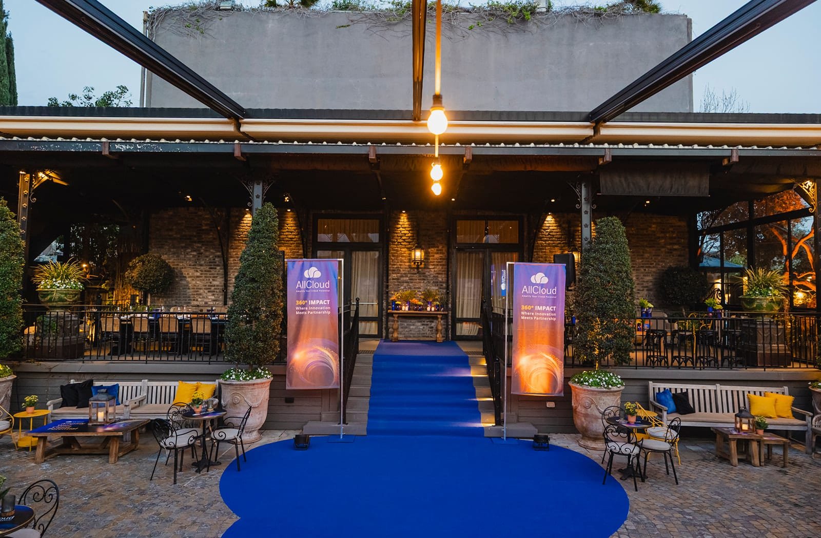 האירוע תוכנן כך שיאפשר זרימת קהל טבעית בין אזור החוץ לאולם המרכזי, ההגשה הקולינרית בצילחות אישי עם מגוון עשיר של מנות, איפשרה תנועה בחלל ועודדה מינגלינג איכותי בין הלקוחות, השותפים העסקיים ונציגי החברה.השפה העיצובית שילבה את עולם המותג של AllCloud עם אסתטיקה של המקום, באמצעות צבעוניות משתלבת, טיפוגרפיה נקייה ונוכחות מותגית חכמה – הכל כדי לייצר חוויה רב-חושית שמשקפת את ערכי החברה בצורה אלגנטית ולא מתאמצת.